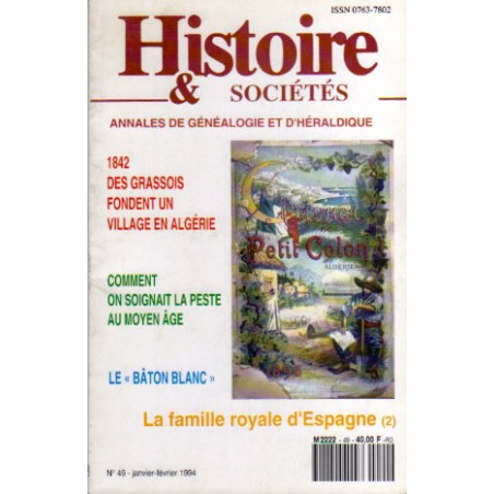 La fondation du village de colons en Algérie par des Grassois en 1842. Le « bâton blanc » des gardiens de la paix. La peste au Moyen Âge. La maison royale d'Espagne (2e partie).