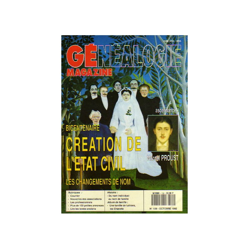 La fin d'une royauté (1792). Du nom individuel au nom de famille. La création de l'état civil. Les changements de nom. Une famille de luthiers, les Charotte. Marcel Proust. Patronyme et paléographie, 1574 et 1632.