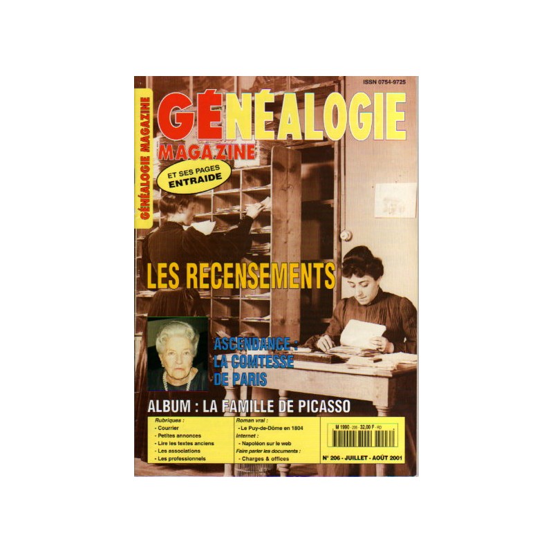 Le Puy-de-Dôme en 1804. Les recensements. La "vraie" vie de Pablo Picasso. La comtesse de Paris. Compléments sur les parentés insolites. Une inféodation, 1422. Et maintenant, Napoléon sur le web ! Charges & offices.