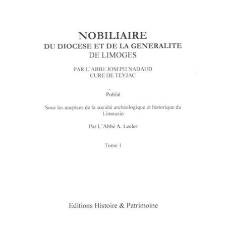 Nobiliaire du diocèse et de la généralité de Limoges par l'Abbé Joseph Nadaud, curé de Teyjac.Publié en 1856 sous les auspices de la société archéologique et historique du Limousin.