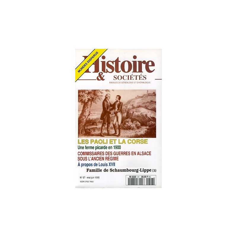 Les Baudouin, une famille de commissaires de guerres en Alsace. Les Paoli et les tentatives d'indépendance de la Corse au siècle des Lumières. Une ferme picarde en 1900. Le premier pneu pour l'automobile. Famille princière de Schaumbourg-Lippe.
