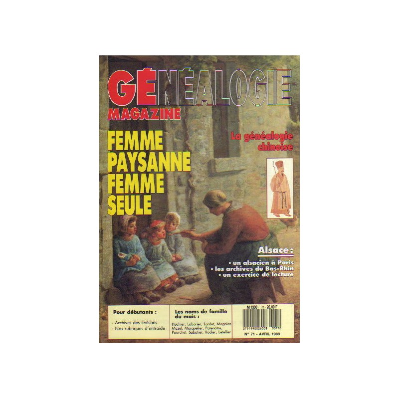 Flâneries parisiennes d'un artiste alsacien - Paysanne et femme de migrant - La généalogie chinoise - Etes-vous pour le tiers-état ? Le voyage inutile - Gildas Bernard, l'état civil protestant - Ascendance: l'enracinement d'un élu, Léon Fatous, maire d'Arras - L'autorité des nobiliaires (2ème partie) - Cours du mois: les archives diocésaine - Les noms de métiers (5ème et dernière, partie) - Les Archives départementales du Bas-Rhin -Ecriture ancienne : nos ancêtres alsaciens 1813 et 1887.