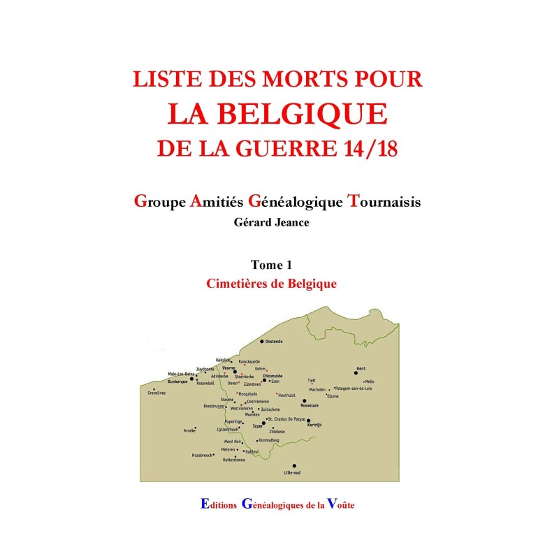 Liste des morts pour la Belgique de la Guerre 14/18 Tome 1 Cimetières de Belgique