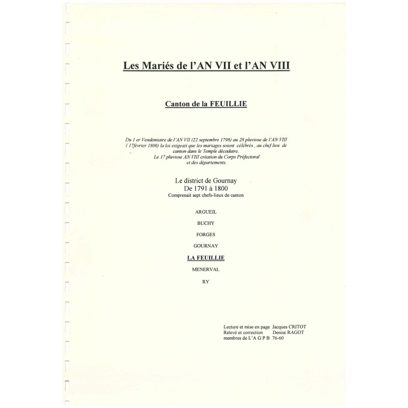 Les Mariés de l'AN VII et l'AN VIII - Canton de la Feuillie
